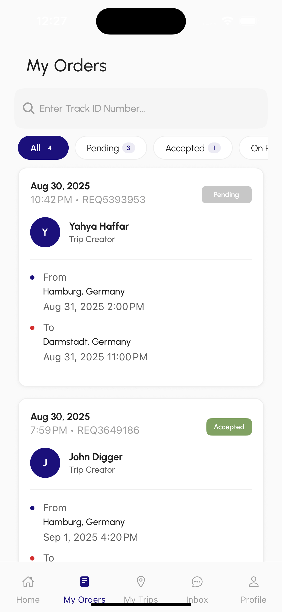 تصفح الرحلات المتاحة إلى وجهتك، أرسل طلباً إلى الناقل مع تفاصيل العنصر الخاص بك. بمجرد القبول، تحدث مباشرة وتتبع التسليم الخاص بك حتى الاكتمال.