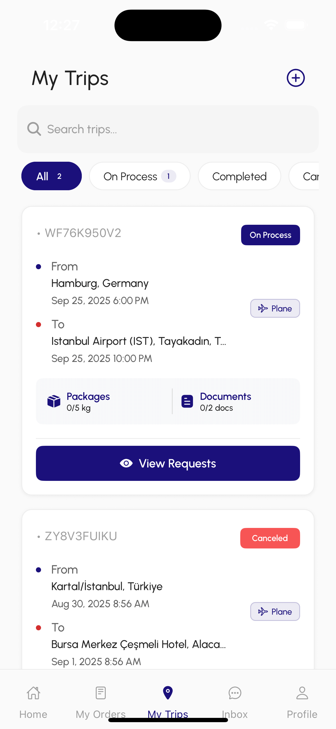 يمكن لأي شخص إنشاء رحلة عن طريق نشر تفاصيل سفره (المغادرة، الوجهة، التواريخ). هذا يجعلهم تلقائياً ناقلاً. يمكن للمستخدمين الآخرين بعد ذلك تصفح الرحلات المتاحة وإرسال طلبات لحمل عناصرهم. يمكن للناقلين قبول أو رفض هذه الطلبات.